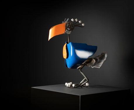 landbouwmotoren. „Ik ben opgegroeid in een beetje een rare mix van natuur en techniek. Het sjouwen met die motoren werd op een gegeven moment te zwaar. Wat ik doe, het in elkaar lassen van vogels en beesten, heeft alles met techniek te maken. Soms gebruik ik ook wel grasscharen of snoeischaren, wat oude elektronica. Ik weet over het algemeen wat ik wil maken, en hoe eruit moet zien.