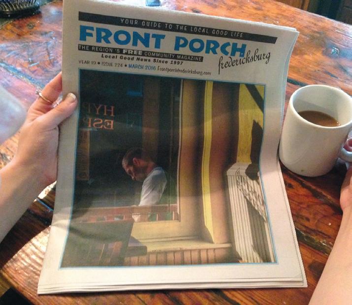 Front Porch Fredericksburg is a free circulation magazine published monthly by Olde Towne Publishing Co. Virginia Bigenwald Grogan, Publisher.