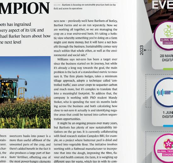 At the end of 2022, the world’s largest fresh produce company, Dole, announced a major upgrade to its Dole Way sustainability framework. This focuses on robust governance and three core pillars – ’For Nature, For People and For Food’ – that cover environmental, ethical and social and nutritionrelated issues. And in June 2023, Chiquita announced its induction into the Sustainable Agriculture Initiative Platform (SAI Platform) as well as its own planned implementation of that entity’s Farm Sustainability Assessment 3.0 across its farms.
