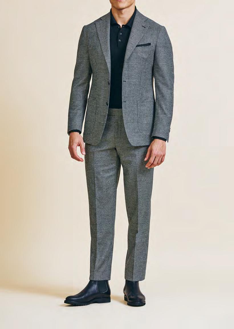 Delving deeper into luxury, we’re thrilled to also be broadening your knitwear options with S160 Wish® yarn, made in Italy by Loro Piana and available from SS25 in fifteen vibrant colours and for every knitwear model (excluding only your full-button bomber, full button with shawl collar closure, beanie, scarf and leisure pants). This yarn is known for its incredible softness, with a feel and micronage comparable to high-quality cashmere. Exclusively crafted from ultra-fine merino wool responsibly sourced from Australia and New Zealand, its remarkably light weight ensures year-round comfort and unparalleled versatility.