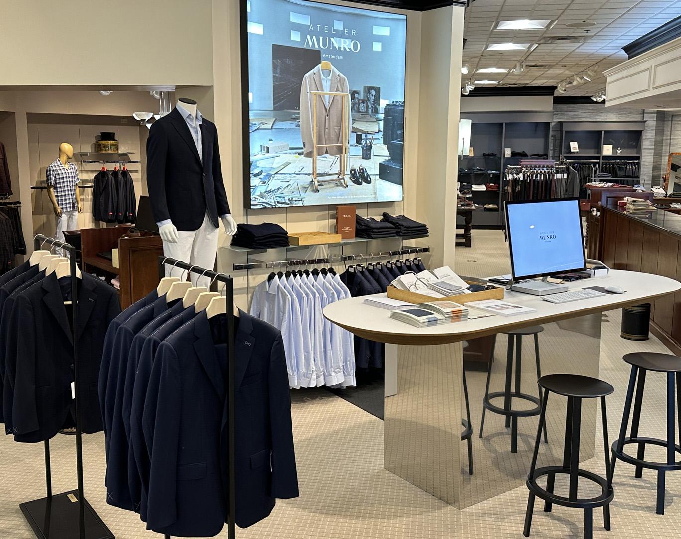 Our in-store Atelier Munro showroom combines innovative technology with traditional craftsmanship, making your selections easy and efficient. Your Personal Stylist will help you select from hundreds of fabric choices from the finest Italian mills. Our experts will take your measurements and create your Fit Profile. Your measurements are kept on file for future orders.