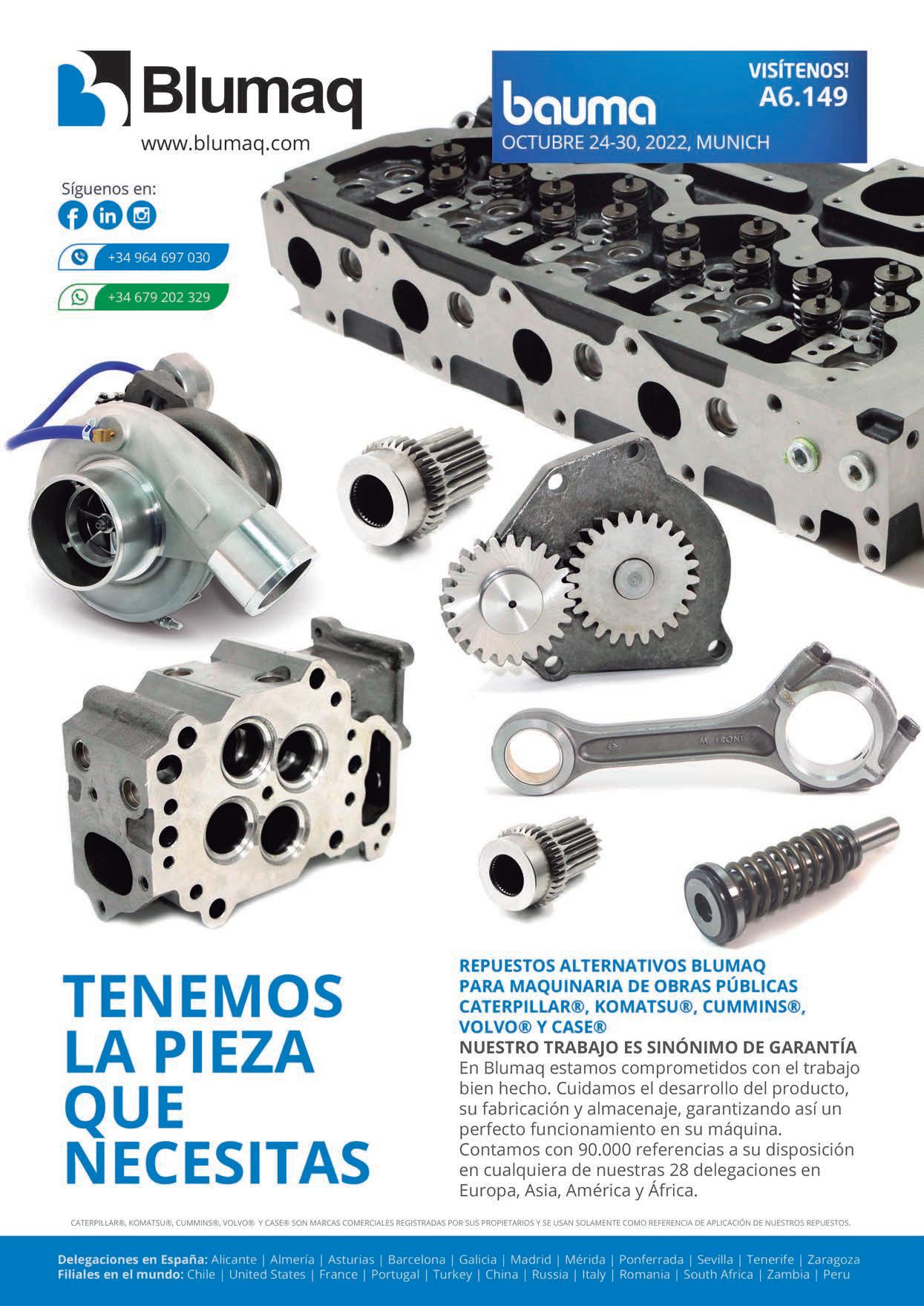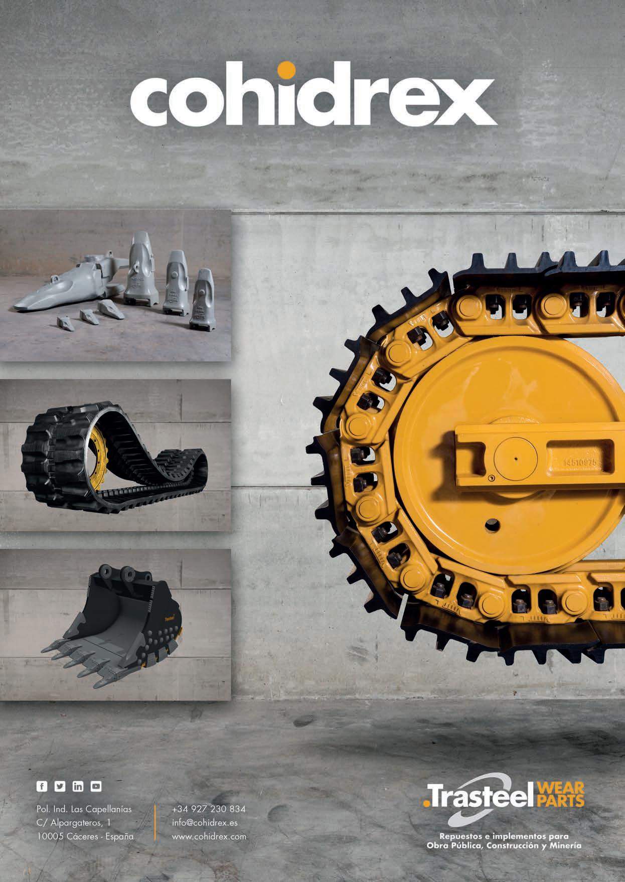 La portada de la revista Rocas y Minerales del número de octubre, a su vez catálogo del MMH, muestra una de las excavadoras mineras más grandes del mundo. Se trata de la Hitachi EX 8000, un monstruo de 2 x 1.450 kW de potencia que se ofrece en versión frontal y retro. El alcance máximo de excavación en la versión retro es de 22,3 m y de 18,8 m para la versión frontal, y la profundidad máxima de excavación de 8,4 m en la versión retro y de 4,43 en la frontal. El peso total del equipo retro es de 849 t y de 544 t en la versión frontal. Todos los equipos Hitachi son importados y distribuidos en España por Hispano Japonesa de Maquinaria.