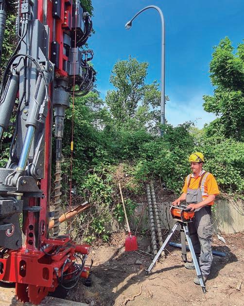 "Como operador de per foración, hay que tener mucha experiencia en este campo para interpretar correctamente los proce sos invisibles en el pozo, basándose únicamente en el comportamiento de la rotación y el avance, así como en los ruidos re sultantes durante la per foración", informa Timo Hölscher, operador de perforación responsable en GBE. "Por supuesto, nadie quiere arriesgarse a perforar en un artefacto sin explotar y, por lo tanto, hacerlo estallar, pero nun ca se puede descartar por completo un cierto riesgo residual. El control preciso y sensible del KR 801-3GS ya me facilita considera blemente el trabajo, y el control remoto inalámbri co hace que no tenga que