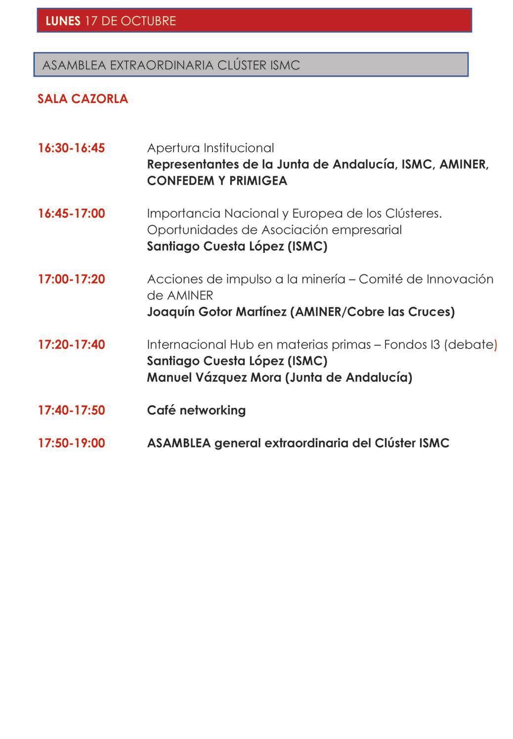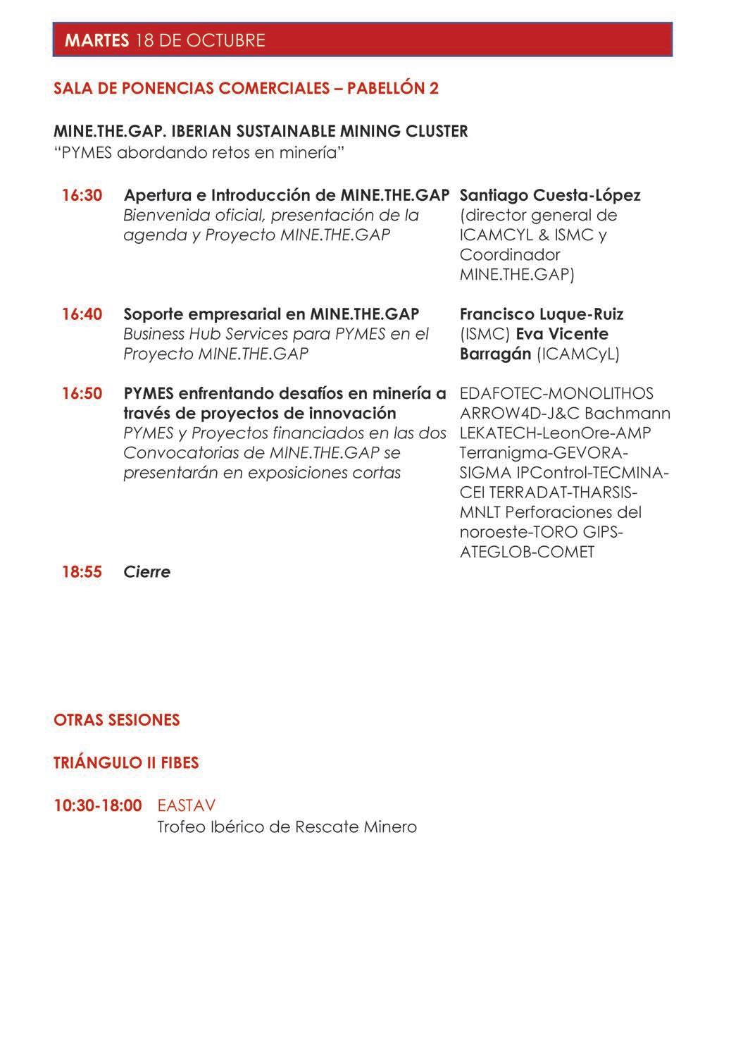 Sin embargo, será la quinta edición la más importante para consolidar su crecimiento, su posicionamiento inter nacional y su atractivo mundial. Una edición que presumiblemente ten drá lugar en octubre del 2024 y que permitirá superar los 250 expositores, abrir un tercer pabellón expositivo y atraer a los grandes gurús mineros a un encuentro congresual y actos para lelos de calidad que serán el referente en el ámbito de la minería mundial.