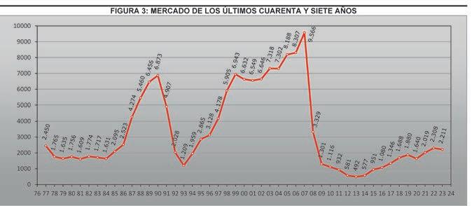un nivel que no se veía desde hacía varios años, pero en 2023 vuelve a caer el mercado hasta las 28 unidades, lo que supone un descenso del -20%.