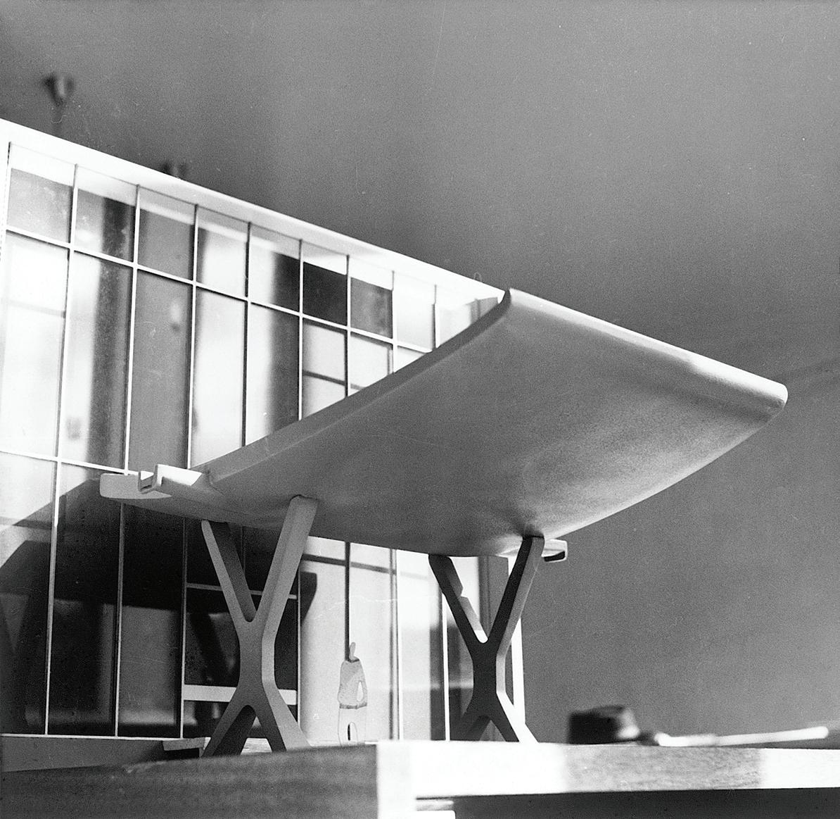 Este regresso aos documentos não se restringe, contudo, a um olhar mais apurado sobre a sua materialidade, mas é também uma oportunidade de os questionar e de reunir nova informação sobre o âmbito e contexto da sua produção. Foi o caso deste grande desenho com o projeto de uma aerogare, que tinha apenas associada a seguinte informação: o número 44 (provavelmente o número de submissão a concurso); a identificação do autor, “Moreira”; e do atelier onde foi desenvolvido, “Laloux-Lemaresquier”.