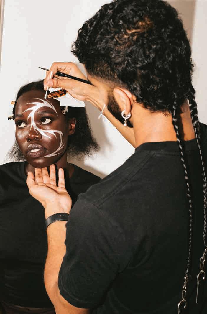 he buzz of a runway is always electric, but peek backstage and the voltage turns way up. Dozens of bodies move with pace and intensity, bringing the designer’s vision to life. Adrenaline is pumping and timing is tight as hair and makeup artists add the final touches to their models. These often undocumented minutes before showtime are captivating. Or at least, we think so. With the bare bones of a creative brief – to design a look inspired by their dream runway – photographer Robyn Daly captures four of Melbourne’s brightest makeup minds in their element.