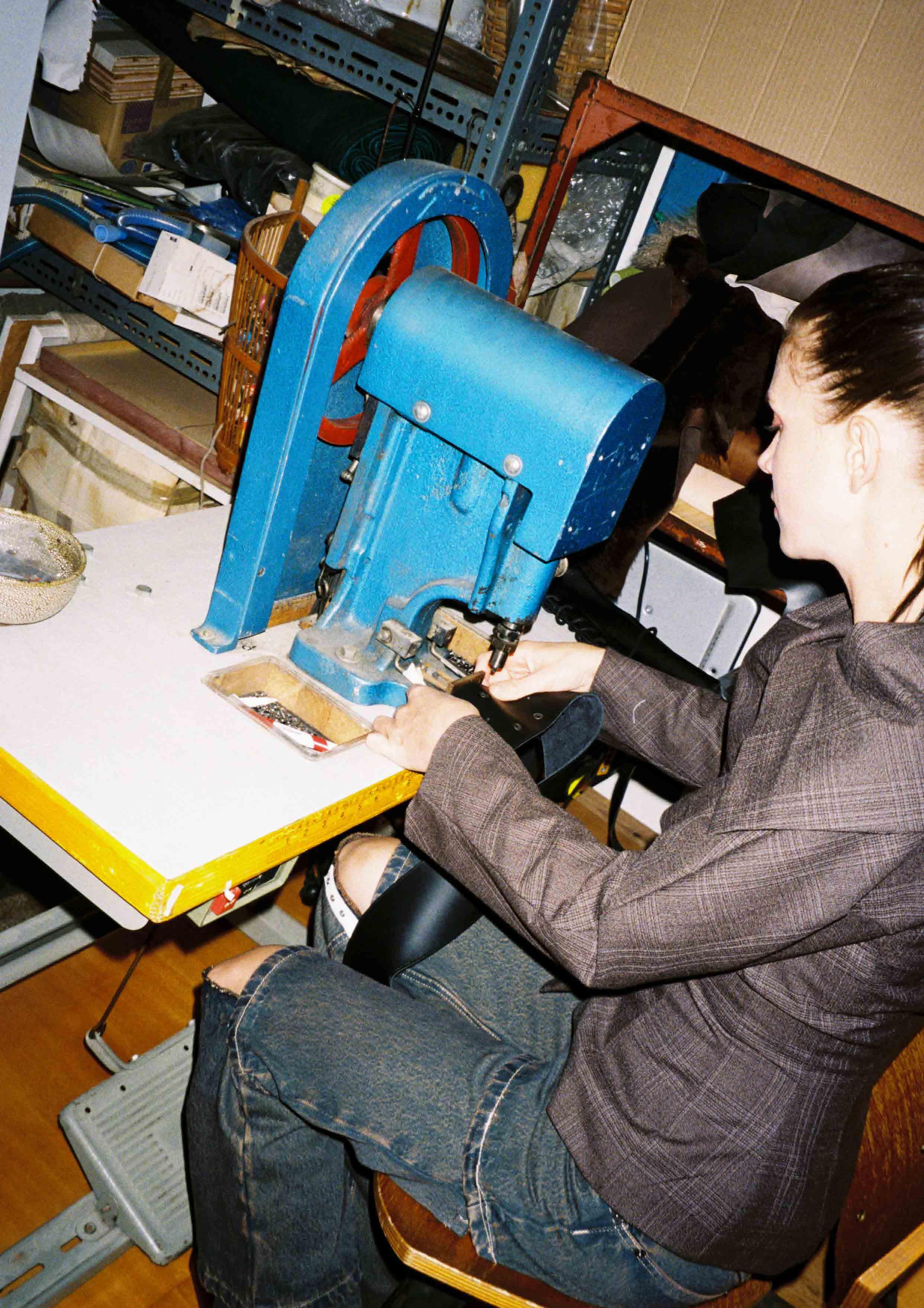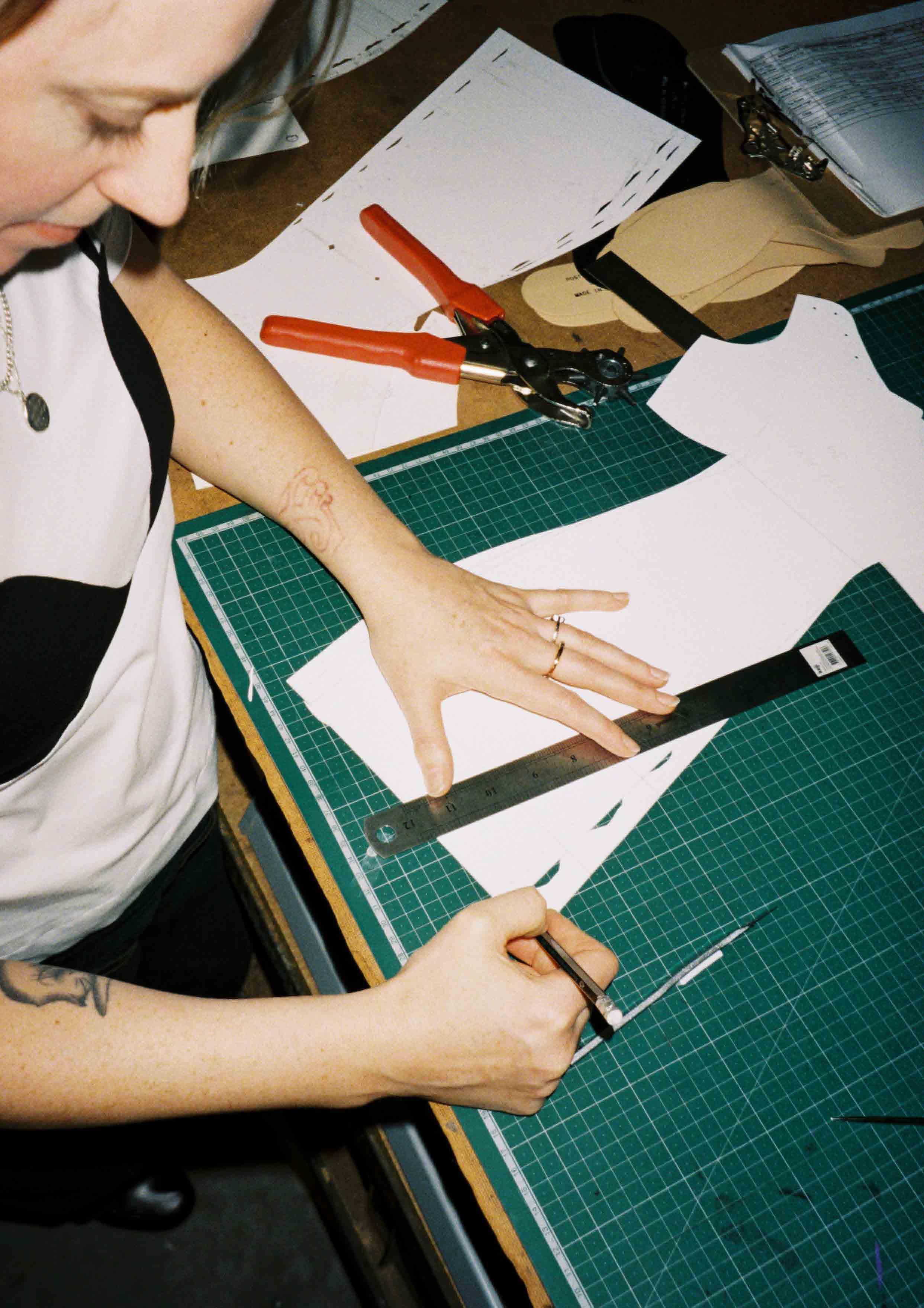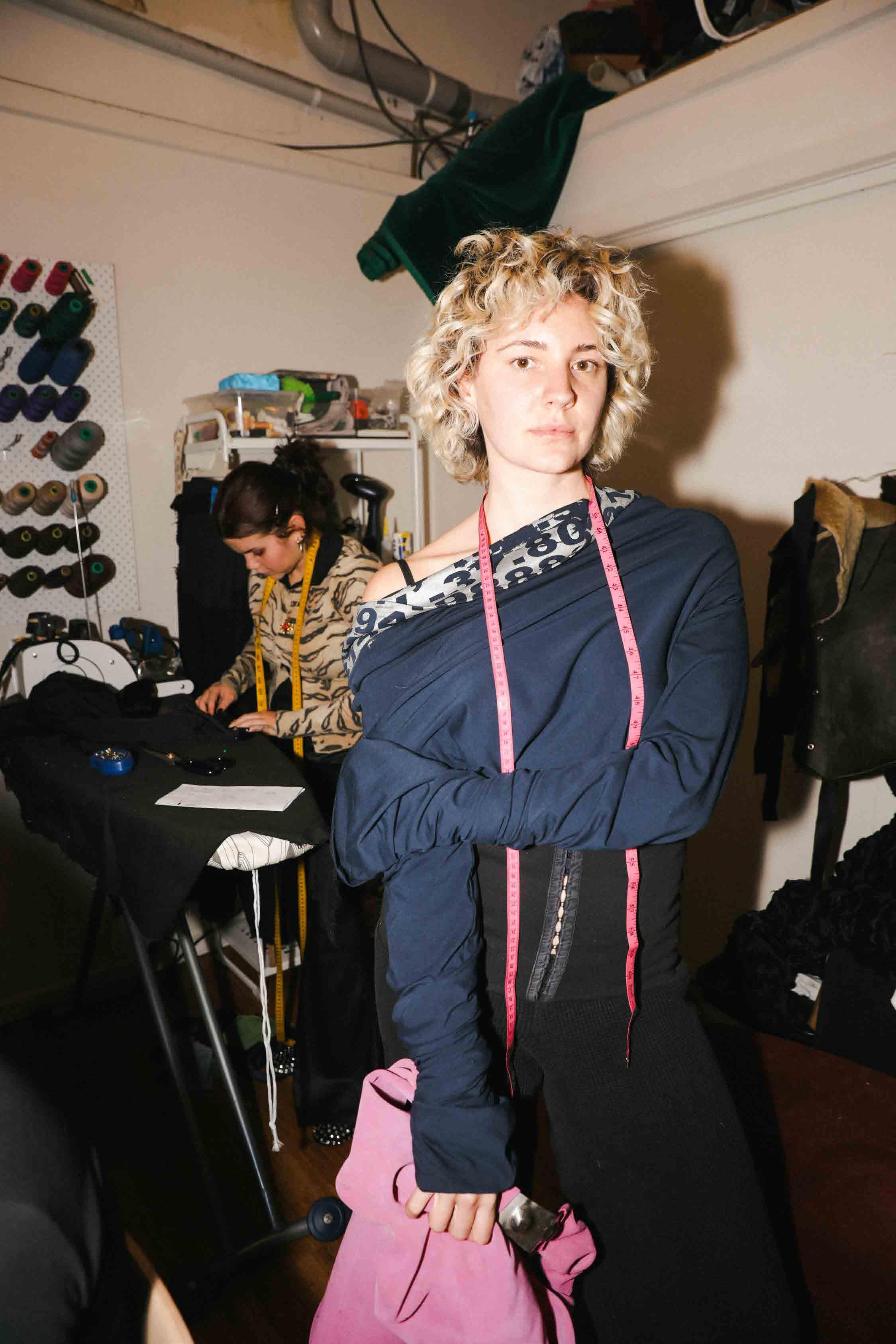 It’s at this moment in her journey that I visit her North Melbourne studio, located just off Errol Street. Her hair is much shorter than the girl I remember from Jimmy Buttons, and her smile is disarming in its warmth. I follow her to the back of her studio, passing through a room packed tight with industrial sewing machines, manned by an all-female team. “Can I get you some tea?” she asks.