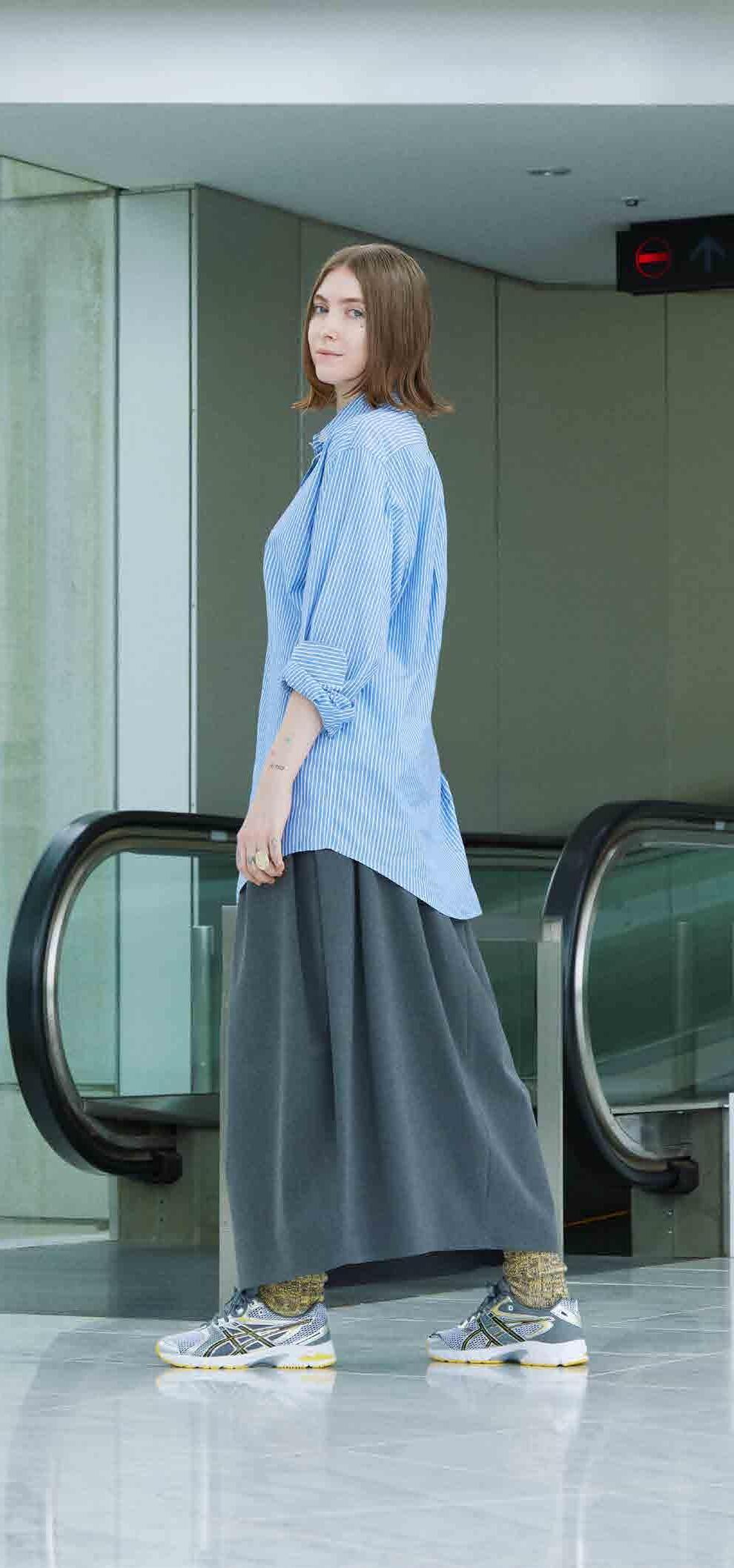SCULPTOR top, UNTITLED AND CO bottoms, SCHUTZ shoes, stylist’s own socks