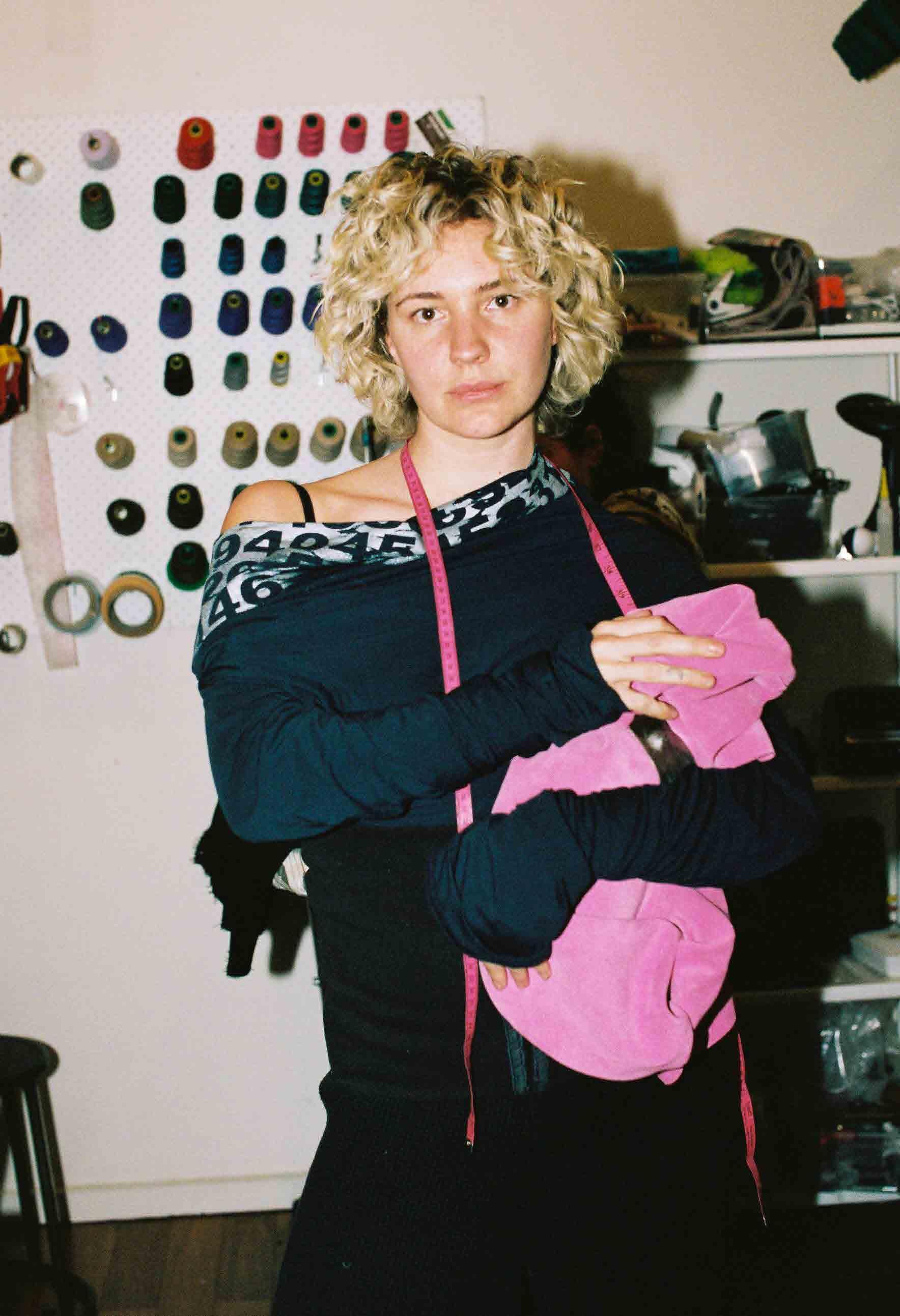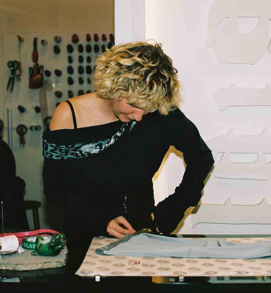 I sit there, taking in the rolls of fabric and pattern paper resting against shelves crammed with stock. Sketches and swatches hang from the walls, while pencils, pens and pins sprawl out over her desk. Who is this person?