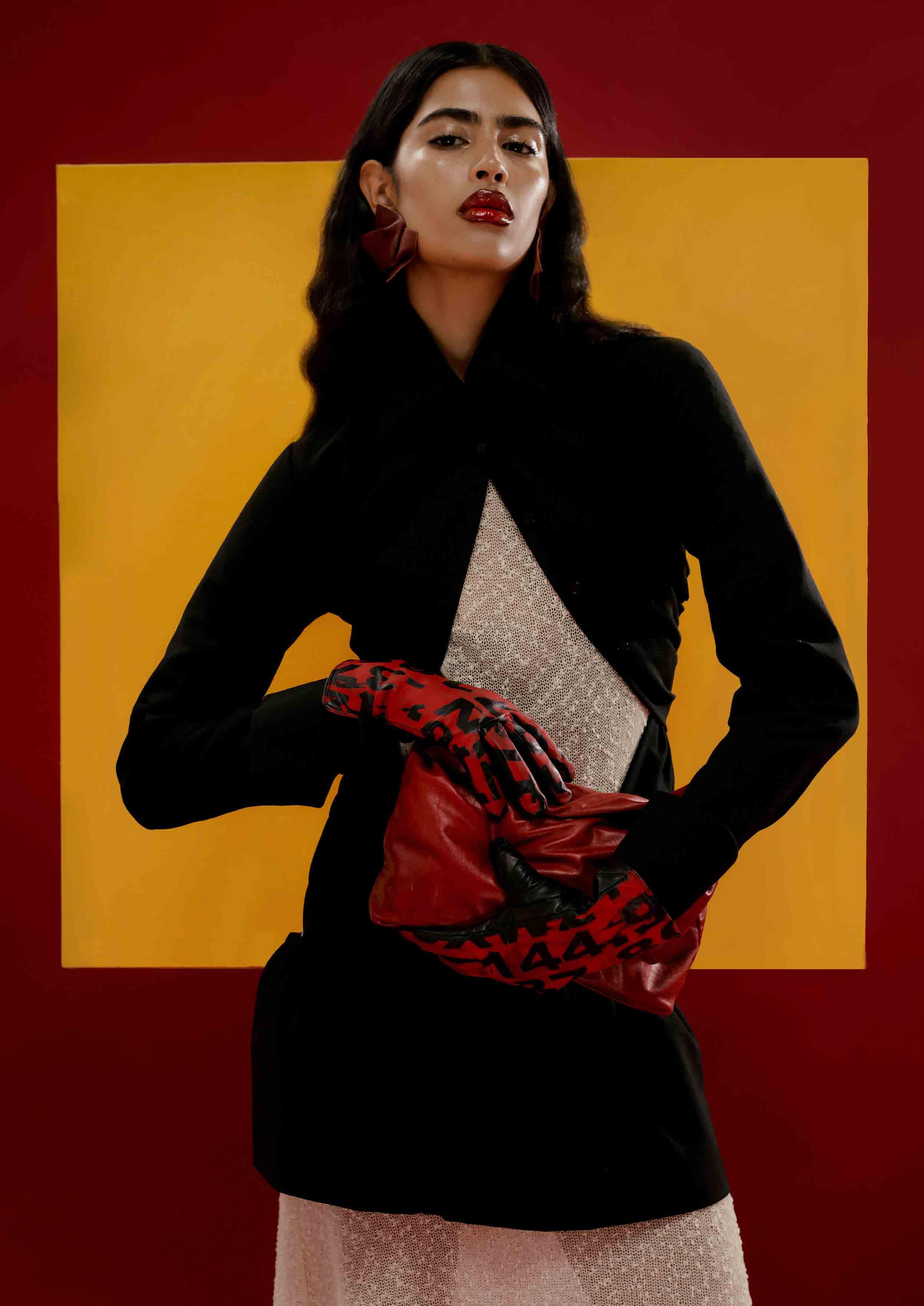 WYNN HAMLYN dress, URTE KAT dress (worn underneath), MATEA GLUŠČEVIĆ shoes, KARLAIDLAW gloves, BAOBEI earrings, stylist’s own bag
