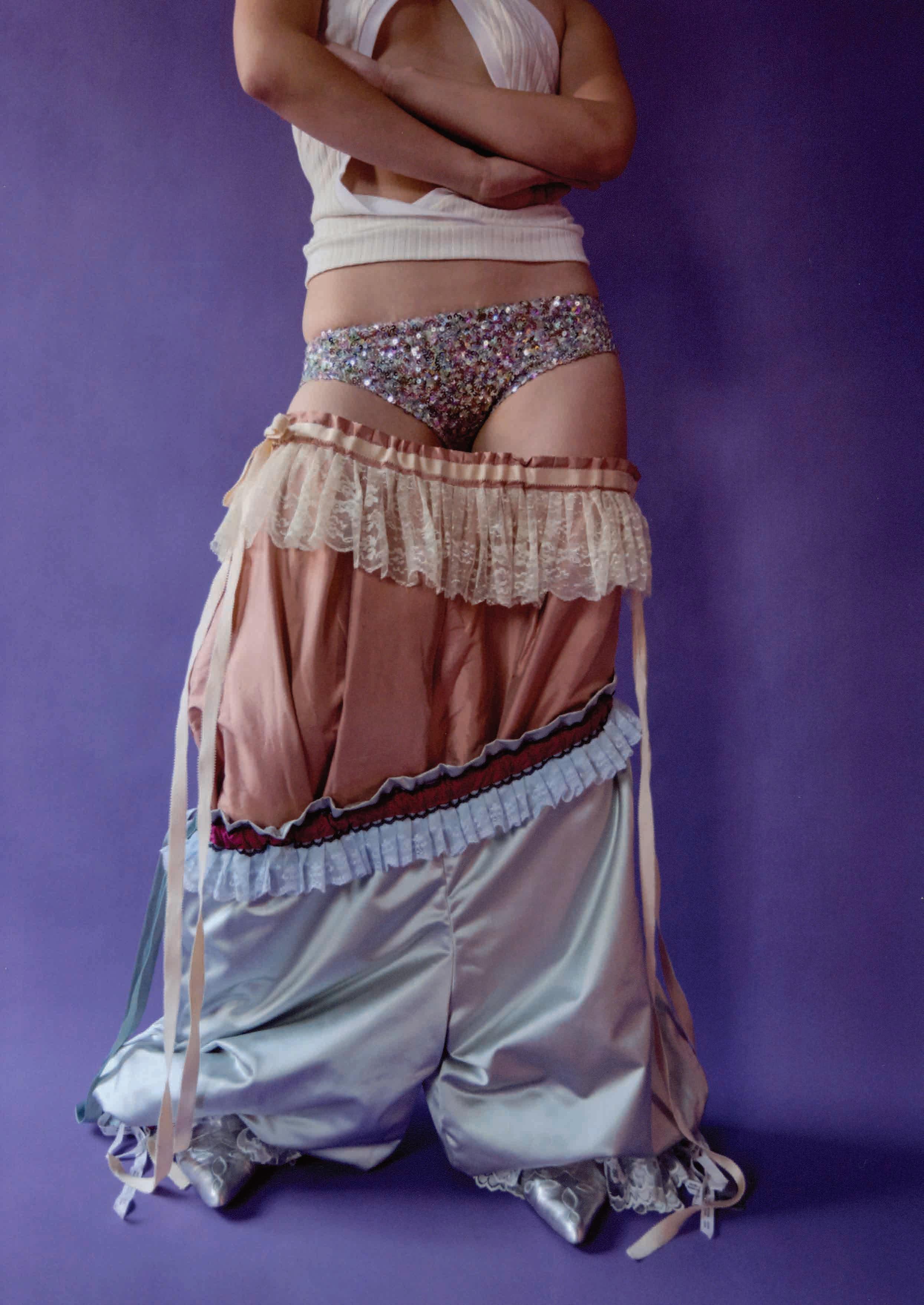 The label’s ethos mirrors Holly’s relationship with weight. Instead of getting frustrated with her body when clothing doesn’t fit right, she tries to shift that irritation onto the garment itself.