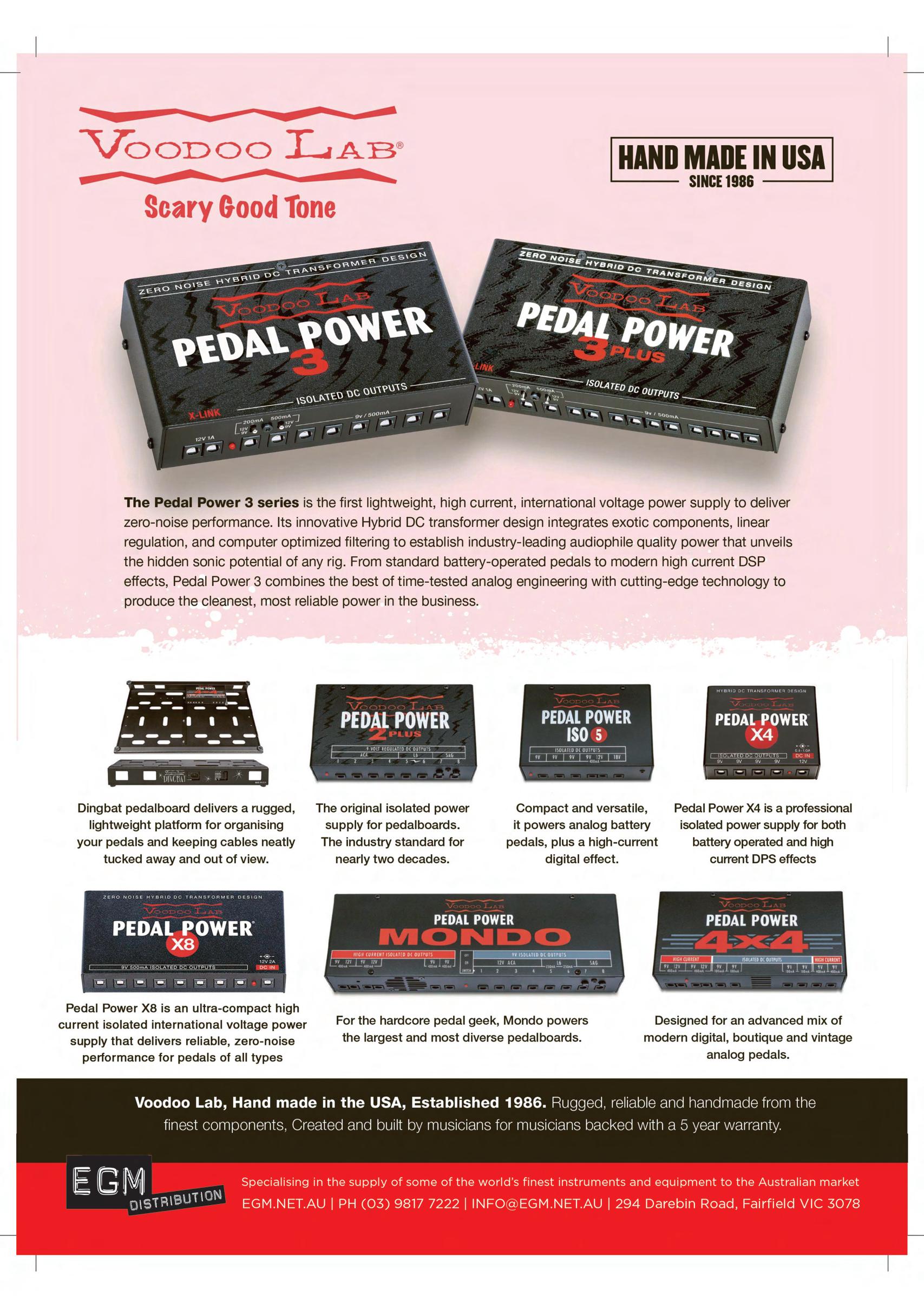 EX TENSION C A BL ES 9V A D APT E R / COM BO PACK VOLTAGE DOUBLER & VOLTAGE CONVERTER MA M ETE R MU TI-PLUG C A BL E R-ANG EL C A BL ES CS 6 LOW PROFILE MULTI VOLTAGE | 7 MULTI VOLTAGE POWER SUPPLY | 12 MULTI VOLTAGE POWER D UR A BLE G OO D S FOR T HE MOD ERN M US I CI AN CONV E RT ERS YEAR WAR R AN TY YEAR WARRANTY YEAR WAR RANTY Specialising in the supply of some of the world’s finest instruments and equipment to the Australian market EGM.NET.AU | PH (03) 9817 7222 | INFO@EGM.NET.AU | 294 Darebin Road, Fairfield VIC 3078