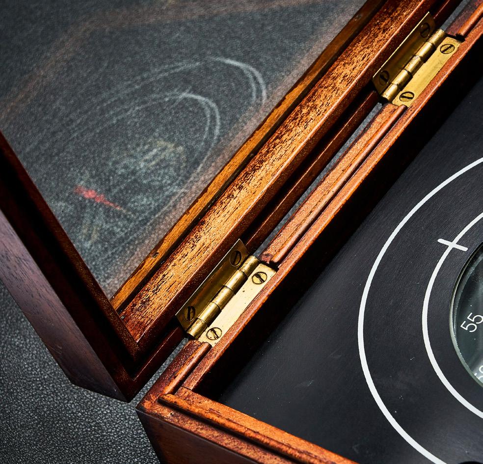 MAHOGANY, ALUMINIUM AND GILDED METAL, MARINE CHRONOMETER, QUARTZ CRYSTAL CONTROLLED, CENTRE-SECONDS, BLACK DIAL