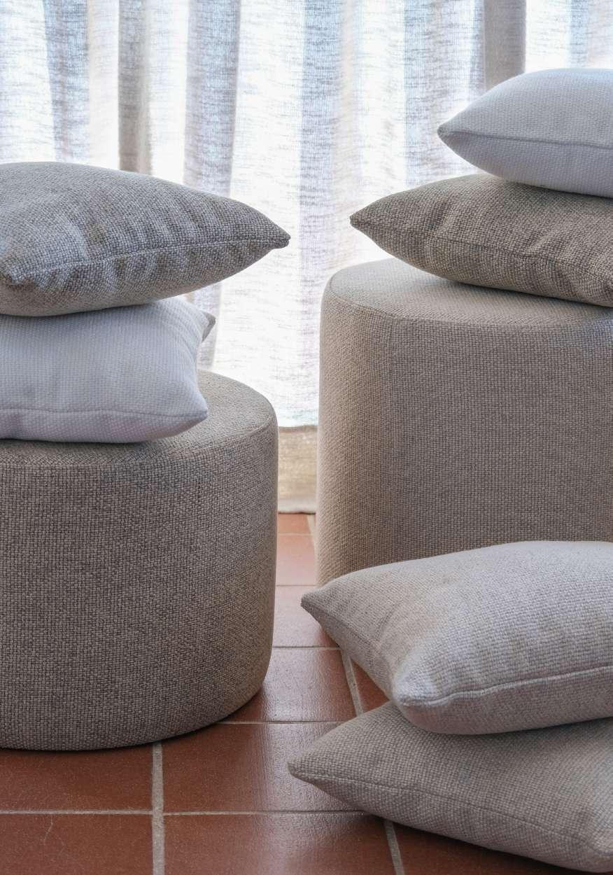 Dos artículos 100% poliéster FR en dos colores, natural y off-white, perfectos para cualquier tipo de espacio