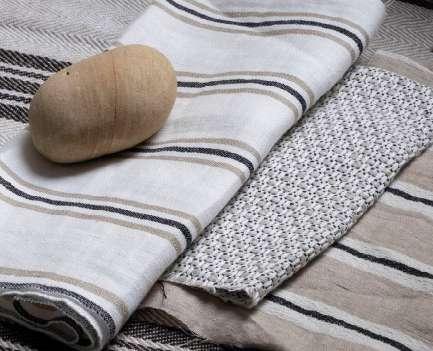 • Lagos: delicado y ligero tejido 100% lino, con diseño de rayas y colorido único en tono negro y lino sobre fondo blanco. Perfecto para confeccionar cortinas o plaids, y también para vestir la cama.