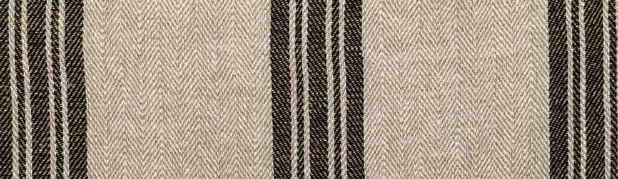 • Faro: tejido que combina una raya jacquard en tonos crudo y negro sobre una base 100% lino. Su elegante calidad lo hace ideal para lograr diversas soluciones decorativas, tales como confección de cortinas, plaids, complementos para la cama o fundas de tapicería.
