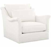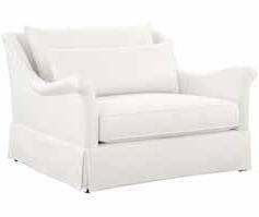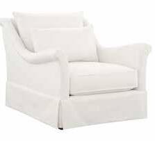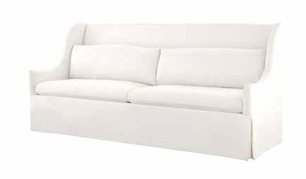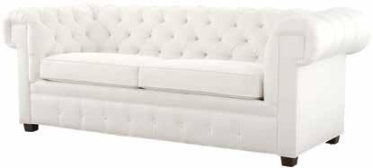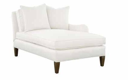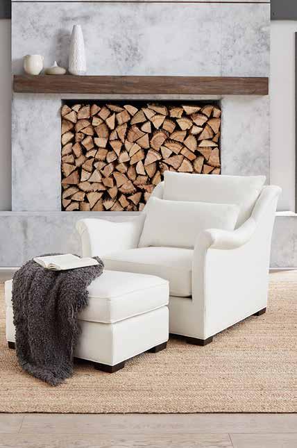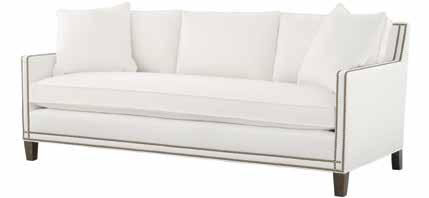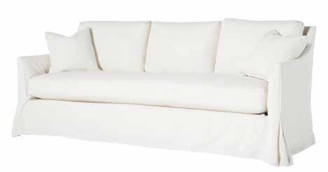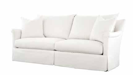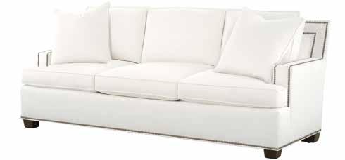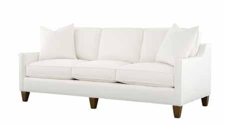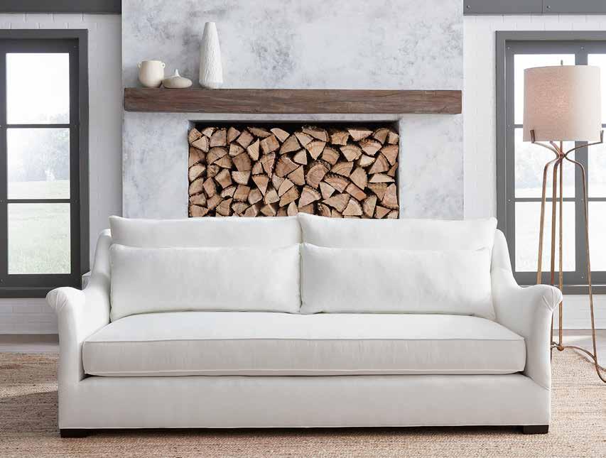 A hand-crafted cushion uses a 1.8 density high-resilient foam core wrapped with a super soft high-resilient fiber blend with North American water fowl feathers. The cushion is sewn into a down-proof ticking to prevent migration of the feathers through the fabric.