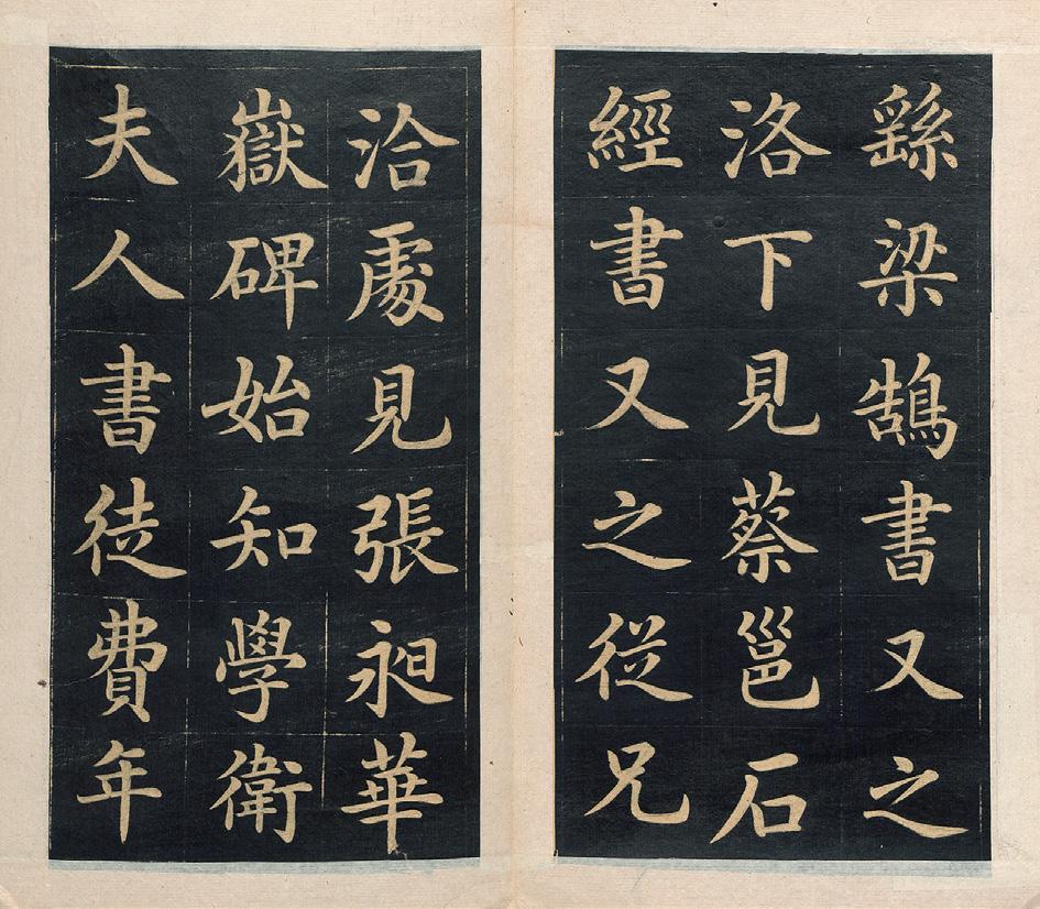 Dafür wurde jedoch schon früh die Reproduktionskunst perfektioniert, etwa bei der hier vorhandenen Technik des Steinabriebs, der Frottage. So erscheinen die Pinyin hier in bemerkenswert exakter Zeichnung in Papierweiß auf Schwarzgrund, jeweils in einer 3x6-Schrifttafel mit quadratischen Feldern. Das Leporello erlaubt es, durch Ausfalten des Buchs alle Tafeln synoptisch zu betrachten und die bestechende Schönheit der Kalligraphie zu studieren.