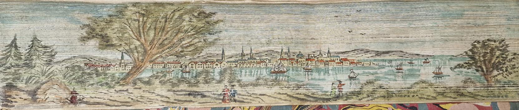 Einzige Ausgabe der frühen neuhellenischen Sprachlehre. – Anfangs mit etwas größerem verblasstem Feuchtigkeitsrand, Titel von II gestempelt. Etwas stockfleckiges Exemplar aus dem Besitz eines Mannes namens Gubler, vermutlich ein Philhellene, der das Exemplar in der Familie an die nächste Generation weitergab. Während eines Aufenthalts in Bukarest wurde das Exemplar dann am 18. Mai 1858 von dem Buchbinder A. D. Athanas neu gebunden (mit entsprechenden Besitzeinträgen und Stempeln, auch auf dem Titel von Teil II).