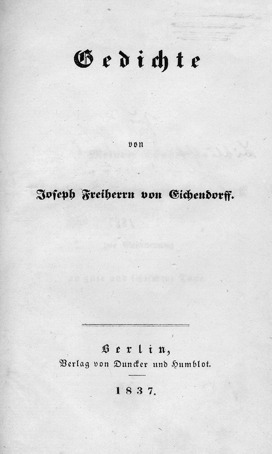 Goedeke VI, 24, 30. – Erste Ausgabe. Mit dem Blatt „Sämmtliche Werke. Erster Band“ und dem gegen Napoelon gerichteten, von der preußischen Zensur verbotenen Gedicht Gelübde (S. 387/88). Am 18. Mai 1809 schrieb Chamisso an Fouqué: „Die Censur läßt das schon gedruckte letzte Blatt in Friedrich Schlegels Gedichten ausschneiden. (‚Gelübde‘: Es sei mein Herz und Blut geweiht, Dich, Vaterland, zu