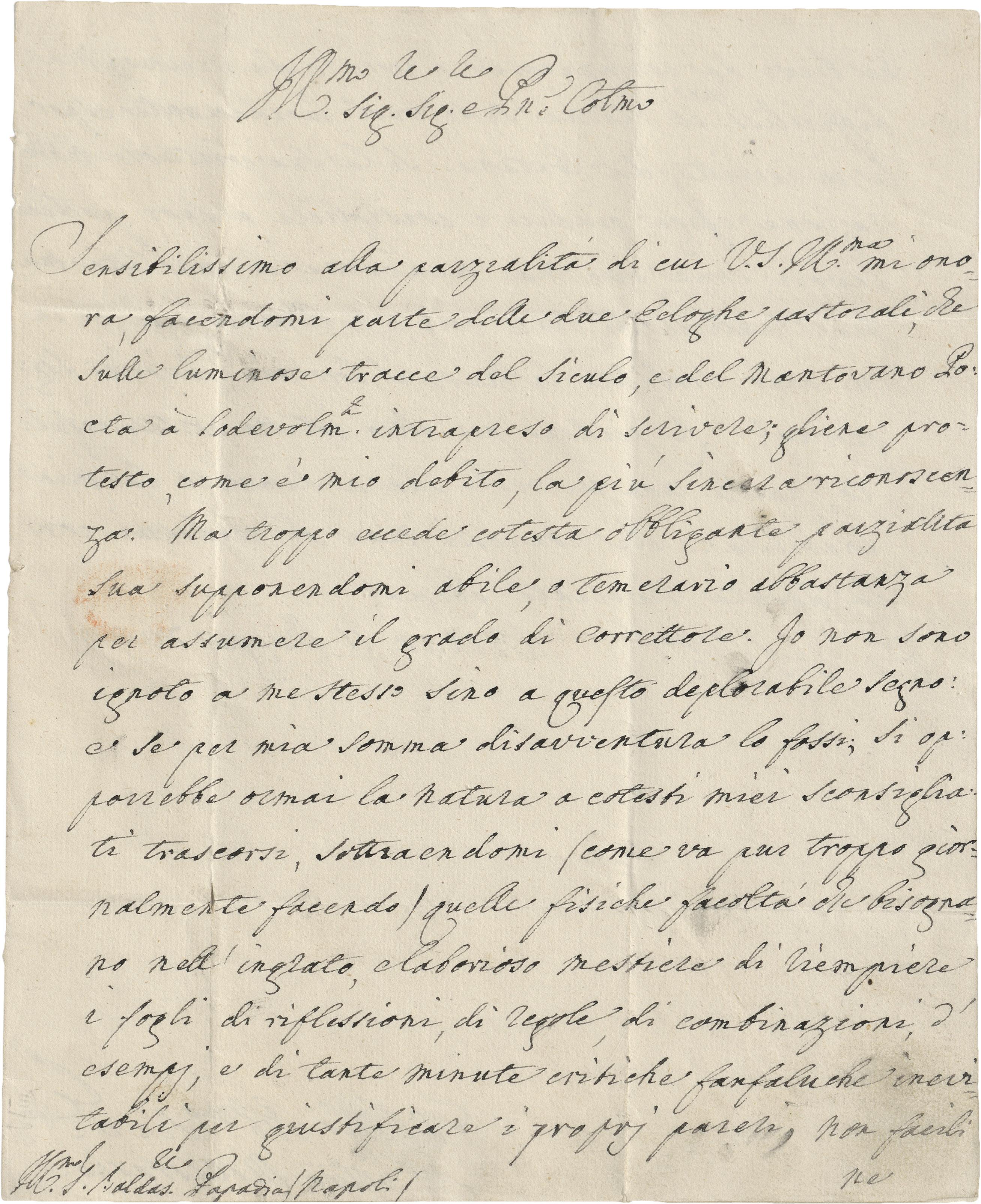 Gaius Maecenas (um 70 v. Chr.-8 v. Chr.), dessen Name als „Mäzen“ zum Gattungsbegriff wurde. – Es fehlt wie in fast allen Exemplaren das Erratablatt am Schluss. Etwas braunfleckig, einige Lagen mit Wur mspur im unteren Bug, letzte Blatt mit kleinem Wasserrand.