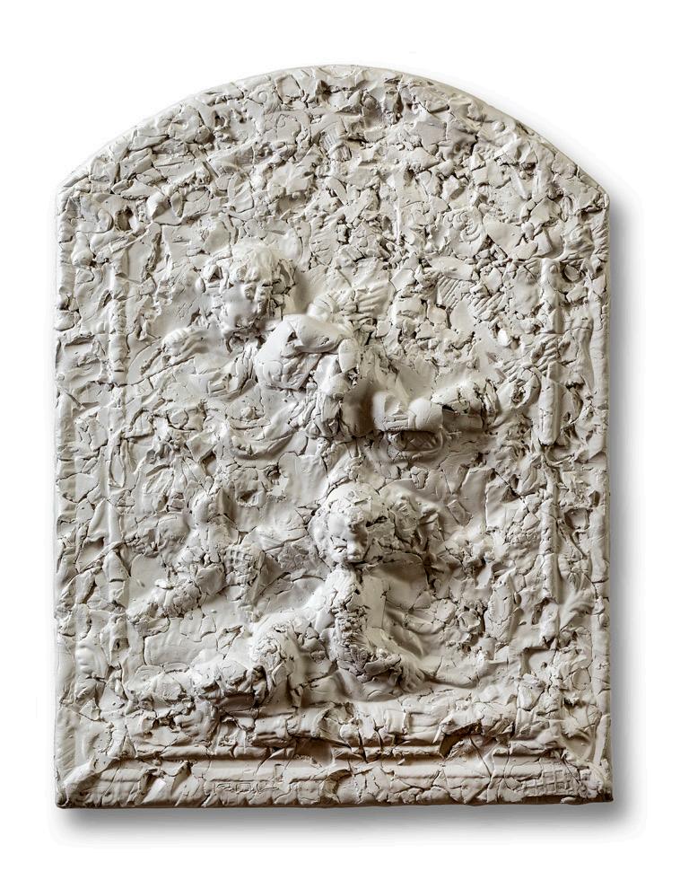es for years, had lost its raison d’etre. What remained was a sculptural imprint of the original form’s silhouette. A full form. Made of the rubble of our era. Pienoarendere is a play on words. We usually give back empties to make new use of them. Here, though, they’re full solids of single-fired white clay (technically inert, non-recyclable material to be treated separately) that are returned to the current space, with no ulterior purpose. Solids made up of fragments of textures and ornaments that pertain to us. An indelible presence that has already become a future historical memory. In a certain sense, the Pieniarendere close a circle in my experimentation that began in 2008: the form on which I initially decided to replace the depicted subject had been completely altered through casting, and now what remains of that form is its special imprint (made of scraps of time and our evolution)2 .