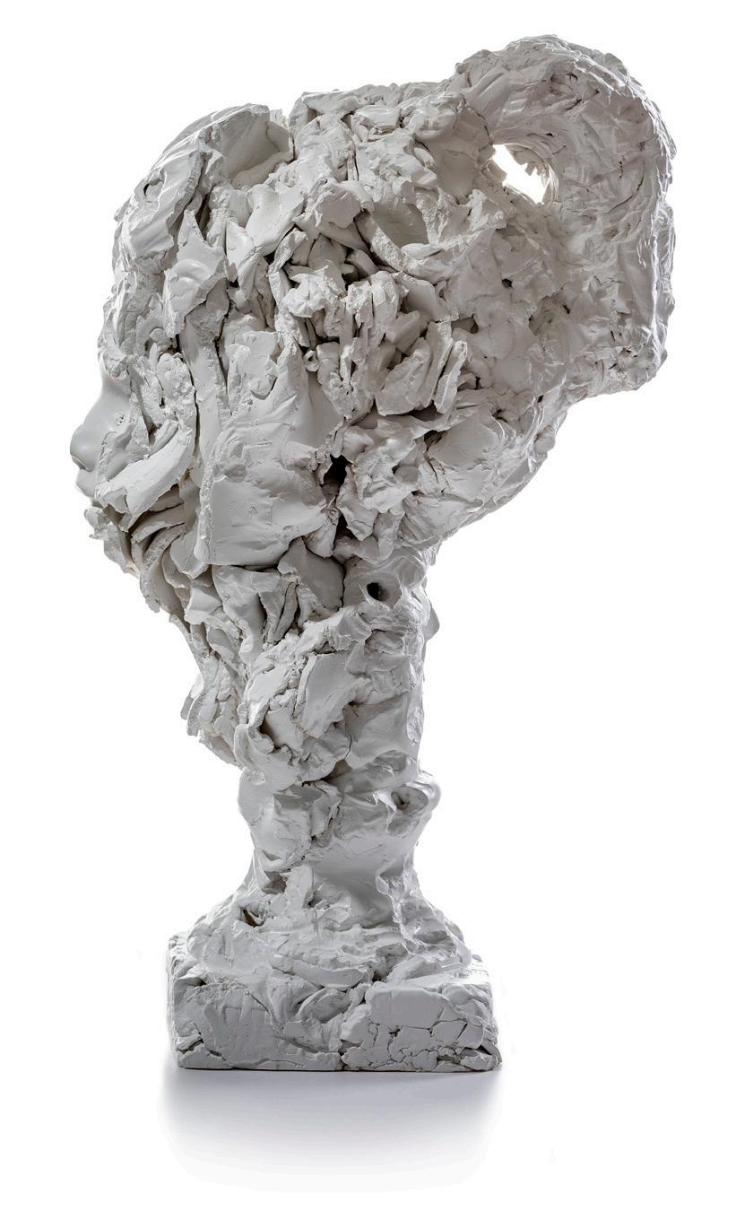 First and foremost, he broke with the traditional criterion used in the production of ceramic sculptures by swapping the vertical casting process for manual filling of antique molds which, opened and set on a horizontal surface, are slowly packed with material “via placement”.