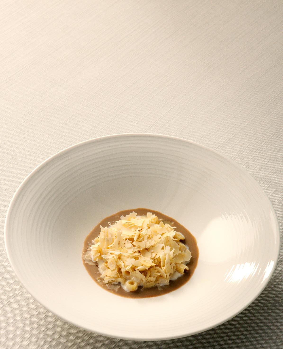 Plating: Strain the milk, separating it from the helichrysum, and bring to the boil. Add salt and 180 g of pasta tubes: cook for 10/11 minutes. When cooked, the milk will have reduced considerably and thickened to form a sort of cream. Turn off the heat and stir in two tablespoons of cannellini bean miso, grated Parmigiano and lemon juice.