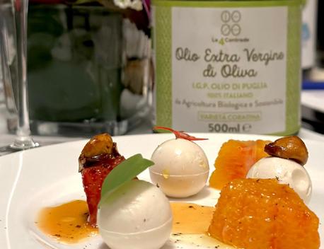 Arrange the leaves of pink Radicchio di Verona, lightly dressed with olive oil and salt, like petals along the entire length of the radicchio and finish with the fried radicchio.