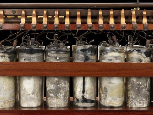 B A visitor studies one of the world’s oldest rechargeable batteries dating back to 1860.