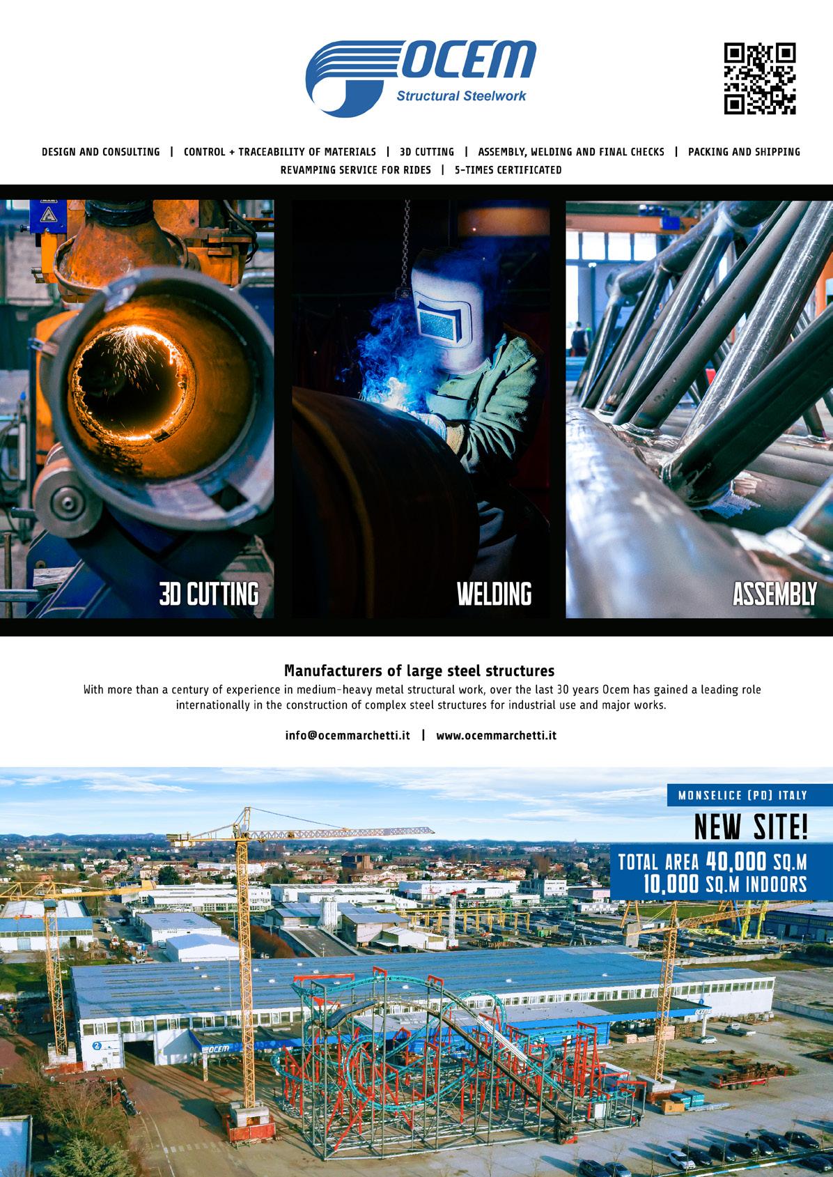 In copertina, c’è Jamaica Drum, una major ride che in queste settimane sta lavorando con successo nell'area Carnival del Global Village Dubai, il popolare evento incentrato su intrattenimenti, shopping e ristorazione che si tiene annualmente a Dubai (EAU). Jamaica Drum è una giostra a pendolo alta 17m dai molteplici movimenti: il disco con 24 posti a sedere oscilla avanti e indietro e ruota, mentre contemporaneamente il braccio gira di 360 gradi, facendo così compiere ai rider dei loop completi. Le sedute sono disposte due a due, con i passeggeri seduti rivolti verso l'interno e con i piedi che poggiano sul pavimento del disco. Barre over-the-shoulder con doppi dispositivi li mantengono seduti in sicurezza.