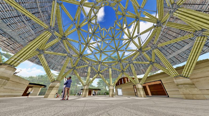 B Rendering del nuovo ingresso in fase di realizzazione allo Zoo Planckendael nelle Fiandre belghe, con la bella torre alta 28m. Il materiale costruttivo scelto è il bambù.