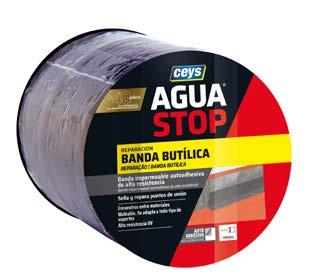 Banda butílica autoadhesiva para sellado y reparación. Disponible en color gris y teja 10x10 cm, y en color teja de 30x10 cm.