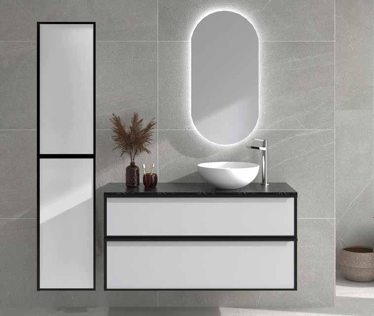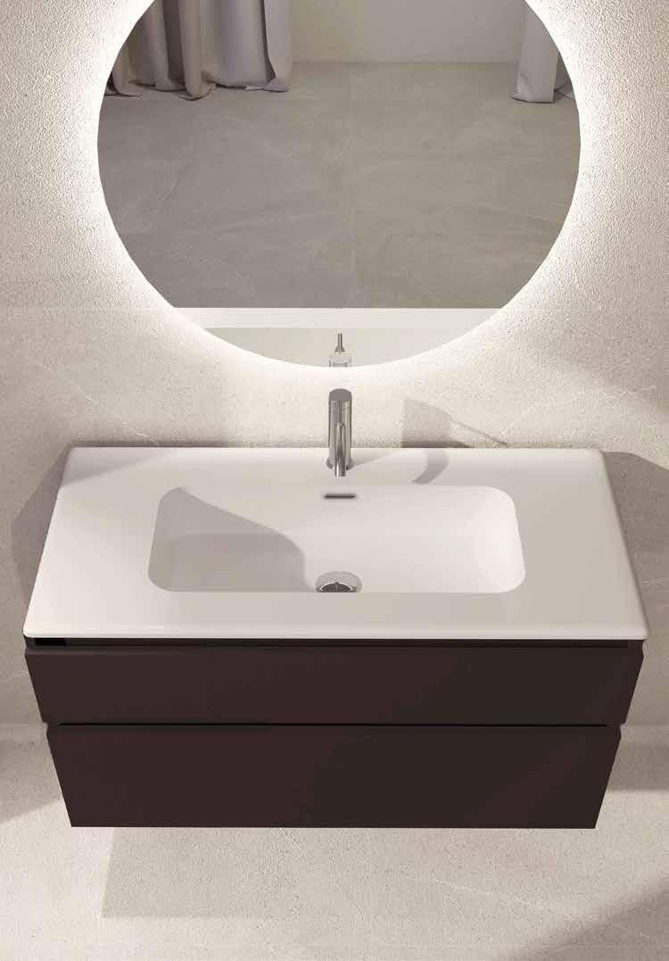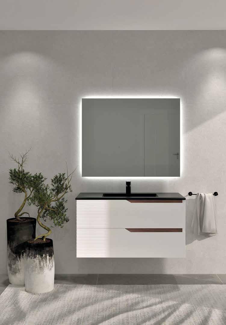 Combinação composta por um móvel DONNA de 100 cm na cor bianco mate. Lavatório preto em porcelana