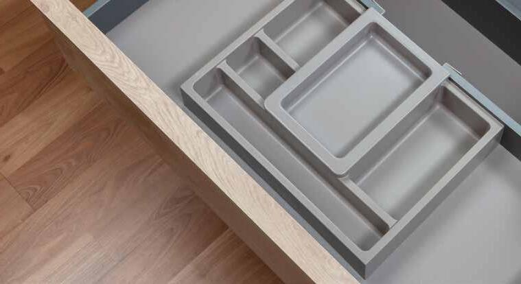 Ferragens: Gavetas com calha oculta HETTICH de extração parcial, com lados em madeira de 12 mm. Fundo das gavetas de 8 mm. Gaveta superior com recorte em “U” para encaixe do sifão. Interior da gaveta na cor cinza. Dobradiças HETTICH de fecho suave.