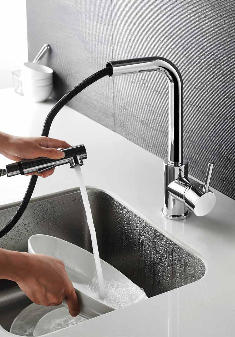 Torneiras | funções de fluxo de água Dois modos de fluxo de água: normal e tipo chuveiro, comutáveis com um prático botão.
