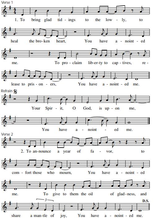 Holy Wisdom, Lamp of Learning, Words © 1996, The Pilgrim Press, Contributor: Ruth C. Duck; Psalm Response, If Today You Hear His Voice - ©2017, Contributor: Ben Walther, OCP; Lord, Hear Our Prayer, Words and Music ©1994 WLP, Contributor: Mike Hay; You Have Anointed Me, Words and Music-Mike Balhoff, Gary Daigle, Darryl Ducote ©1981 Daemean Music, distributed by GIA; Litany for the Earth, Words and Music-Barbara Bridge © OCP: Holy Spirit, Come to Us, Text and MusicJacques Berthier © Les Presses de Taizé, distributed by GIA; Don’t Be Afraid, Words and Music-John L. Bell © 2008, Iona Community, distributed by GIA; Go to the World, Words-Sylvia G. Dunstan ©1991, GIA, Music-Ralph Vaughan Williams, SINE NOMINE ©Oxford University Press; Alleluia, Eucharistic Acclamations and Lamb of God: Mass of the Angels and Saints, Stephen R. Janco, © 2010, GIA. All rights reserved. Reprinted under OneLicense.net #A-729967.