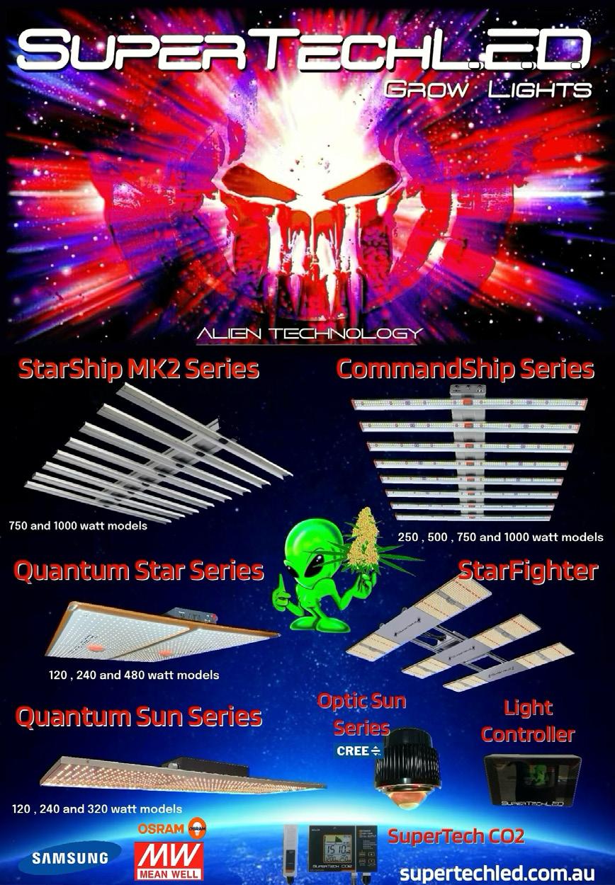Your Aussie performance LED brand with 20 high-performance grow light models to suit every application. SuperTechLED only uses the highest quality components in their grow lights with top bin Samsung 301H and Osram diodes, Cree CXB3590s, and Meanwell drivers for maximum performance and reliability. With over ten years of research and development in agricultural lighting, SuperTechLEDs provide spectrums that will maximise the quality and yields of your crop. SuperTechLED utilises Ultraviolet, Far-red and Infrared in their grow lights to create a full spectrum that will bring out the best expression in your plants.
