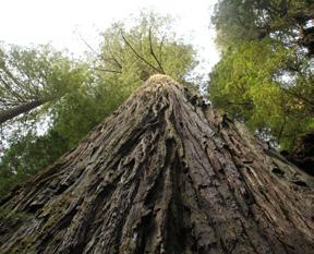 The first sign of a giant tree came in the form of a humungous stump that could hold a dozen children inside the hole burned out of its centre. At the camp, massive trees on either side of the road made the Penske box truck look like a toy.