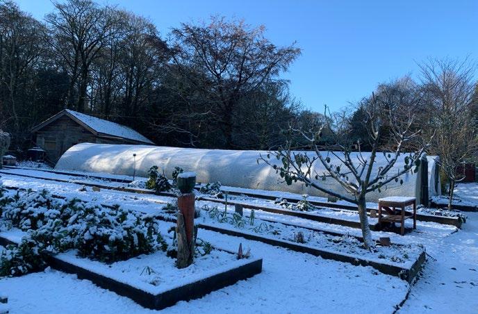 mean the floor might need a sweep. I top up the soap and paper towels in the connecting toilet and head out into the garden. There is always much to be done in a large garden with several wooden outbuildings in various stages of (dis)repair, two big battered polytunnels, an apiary and a wood yard. Plus, a dozen raised beds and endless borders. We never get to the bottom of any job list. And that is what you want in a space where people come to help –opportunities to get their hands dirty and make a difference.