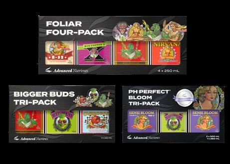 The Bigger Buds Tri-Pack, includes Bud Ignitor®, Big Bud Overdrive® in 250mL. The pH Perfect® Bloom Tri-pack pH Perfect® Sensi Bloom Parts A&B in 500mL and Big Bud® in 250mL. Finally, the Foliar Four-Pack with Bud Ignitor®, B-52®, Bud Factor X® and Nirvana® in 250mL.