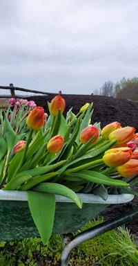 My Barnyard Garden is a former horse paddock turned flower garden specializing in mindfully grown blooms. The flower farm was established in 2020 and opened its first farmstand with the help of family and friends in 2021. Open every weekend between May and October (10 am-2 pm), the stand is a spot for the community to drop by and purchase beautifully crafted bouquets. The flowers and foliage are grown with the seasons and include varieties like snapdragons, cosmos, asters, phlox, dahlias, rudbeckia, and more. Can you hear the bees buzzing? Behind the scenes, there’s always plenty of work on the farm, and once the growing season comes to a close and the tired annuals have been pulled from the ground, it’s already time to plant tulips for the following spring. The farm features many rows and 12’ x 13’ raised beds, each large enough for 500 bulbs. That’s a lot of tulips! In addition to the farmstand, flower lovers can also order bouquets online and have them delivered locally during the growing season.