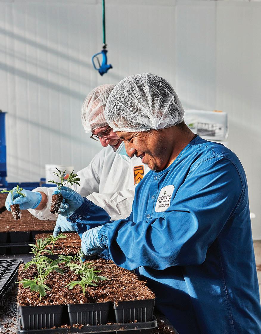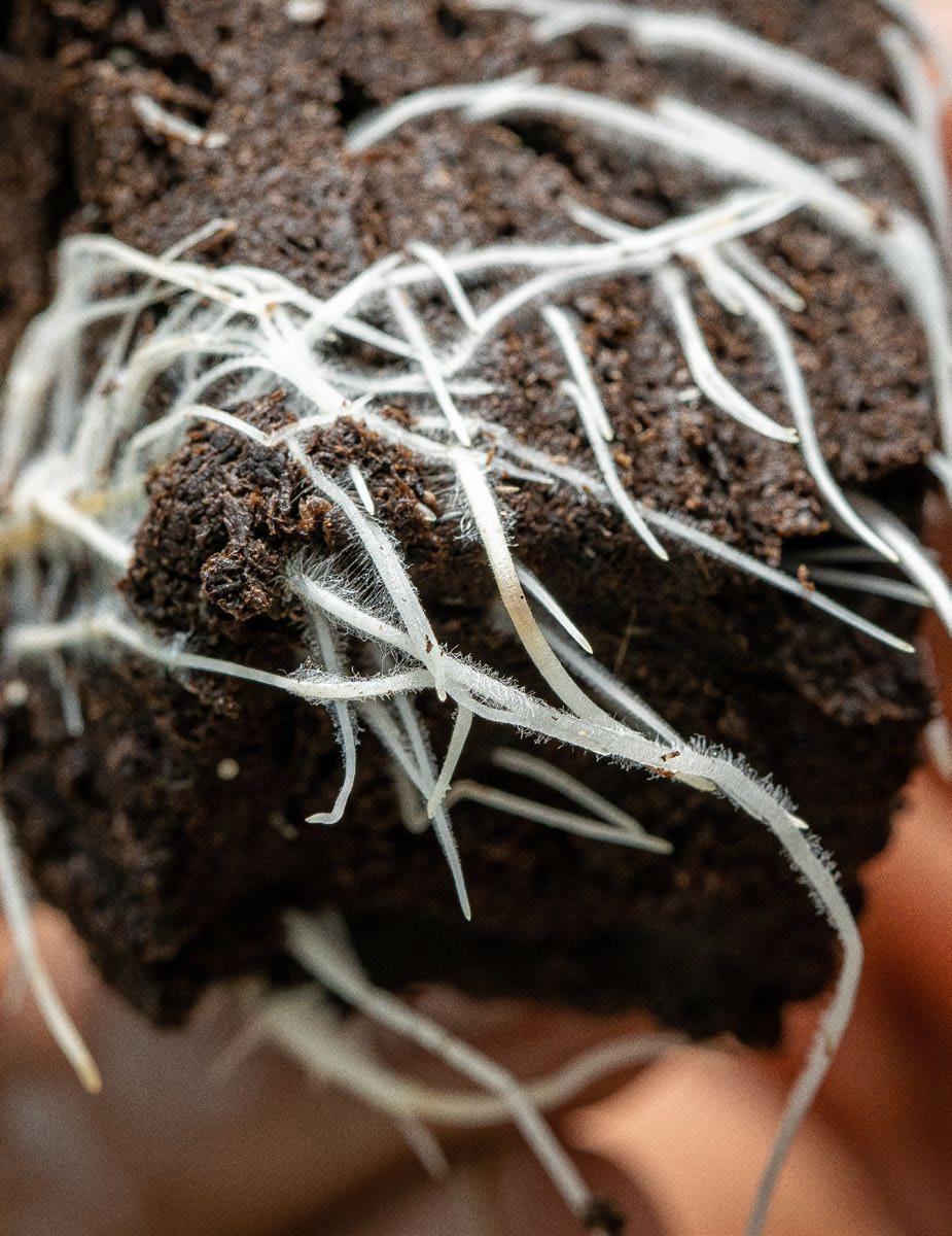 It’s common to see growers germinating seeds or transplanting rooted cuttings directly into final-stage pots—especially those growing in living soil seeking to cultivate as ‘naturally’ as possible. Not only do those tiny plants look out of place in a 7-gallon or 10-gallon container, but irrigation and lighting also become immediate issues. It’s far more challenging to effectively illuminate a bunch of seedlings spread over a large area in large pots—and it’s much easier to overwater them, too. Patiently staging your transplants from plug to nursery pot to a quarter gallon or half a gallon before moving to a final container provides much better control over wetdry cycles, improves space management, and allows young plants to develop compact, vigorous root systems. Mycorrhizal products can arguably be used more efficiently and economically, too.