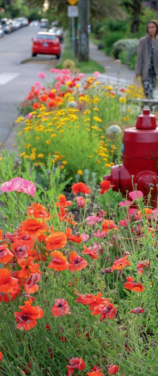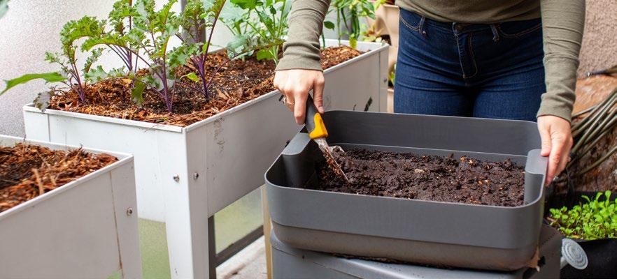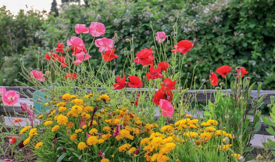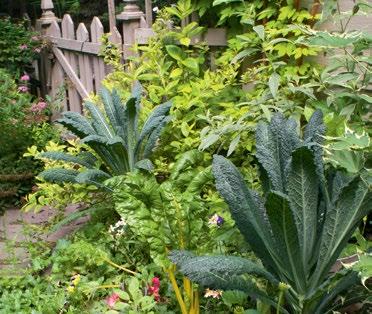 Finding creative ways to use things you already have in the garden is budgetfriendly and reduces the amount of waste in landfills (or sitting in your shed). In their book, The Urban Garden: 101 Ways to Grow Food and Beauty in the City, Kathy Jentz and Teri Speight encourage gardeners to find new purposes for items rather than buying new ones. Doing so adds layers of history and depth to the garden because it connects you to previous gardeners and owners or past experiences. Anything that holds soil can be a planter if you create drainage holes. Old bathtubs, sinks, rain boots, and metal trucks can all be used as containers. An old brass bed frame makes a garden trellis and metal chairs can be placed anywhere to create a cosy relaxation and garden observation spot. Grow vertically in repurposed rain gutters and edge garden beds with rocks from your travels, old cinder blocks or terracotta roof tiles. Finally, Jentz and Speight warn never to throw out broken garden tools. Have a bucket handy to collect broken parts; you can eventually put something together with the pieces. Besides, old rake heads make great hanging racks for garden gloves and small tools! 3