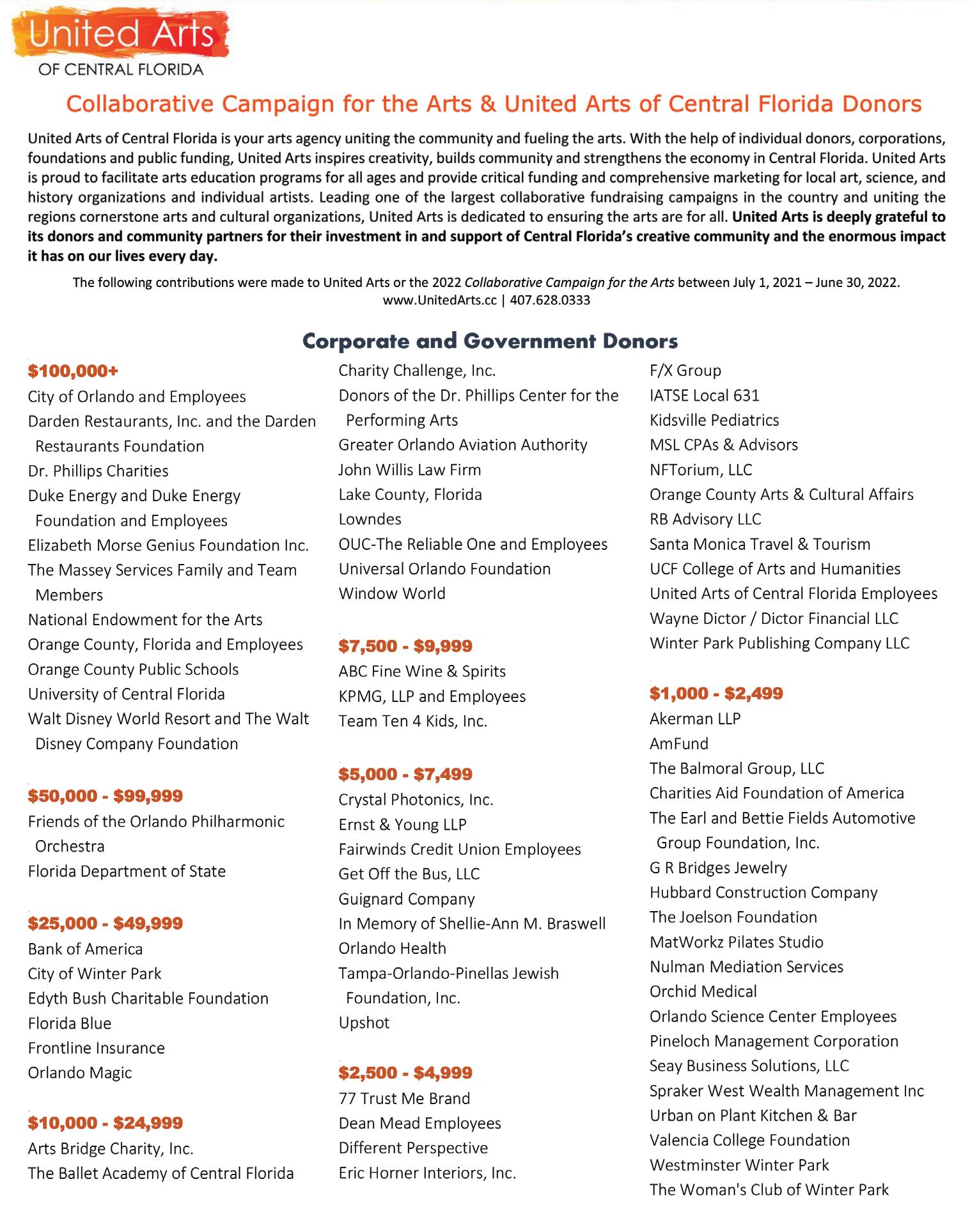 This list includes all gifts and committed pledges as of June 1, 2022 in support of the Garden Theatre’s 2023-2024 season of programming. We apologize for any errors or omissions.