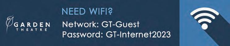 • Recognition in donor list on the Playbill and the Garden Theatre Website for one year