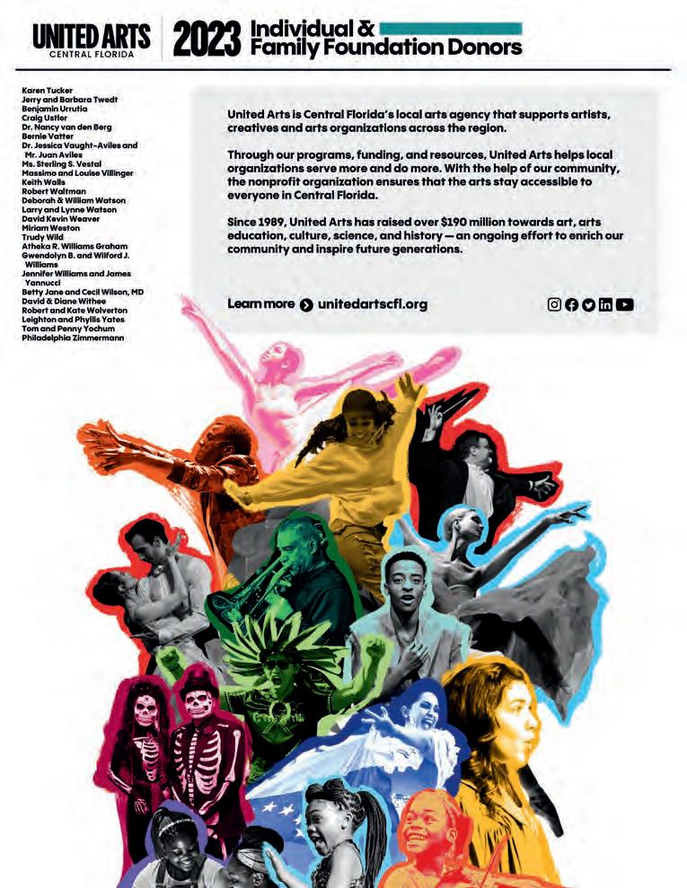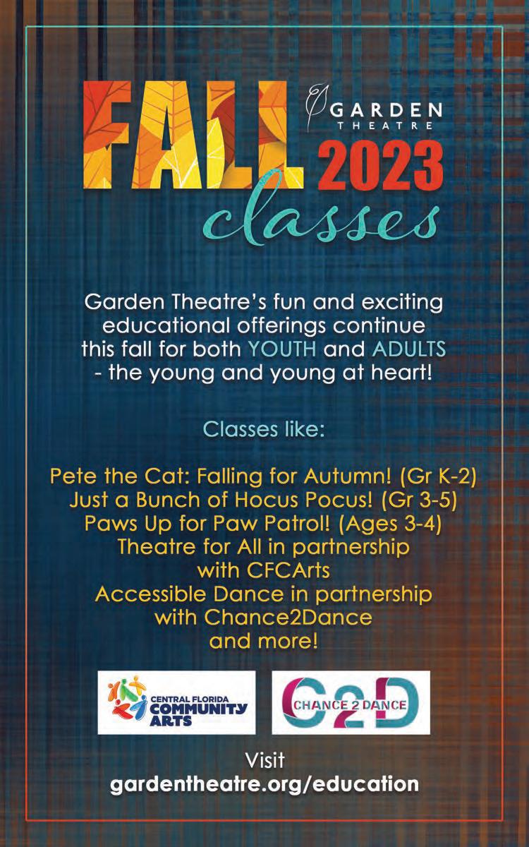 This project is funded in part by Orange County Government through the Arts & Cultural Affairs Program; the State of Florida, Department of State, Division of Arts and Culture, the Florida Council on Arts and Culture, and the National Endowment for the Arts. Additional support for Garden Theatre is provided by generous individual donors and United Arts of Central Florida, home of OrlandoAtPlay.com and UAArtsEd.com.