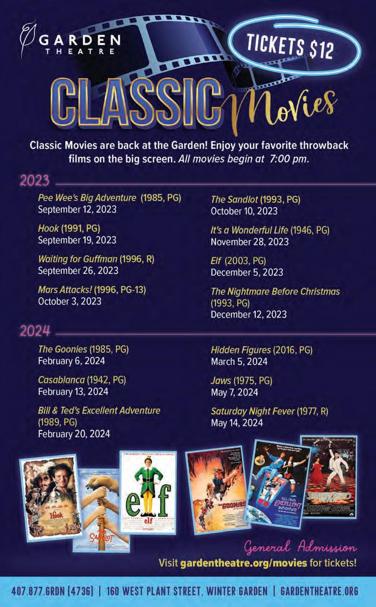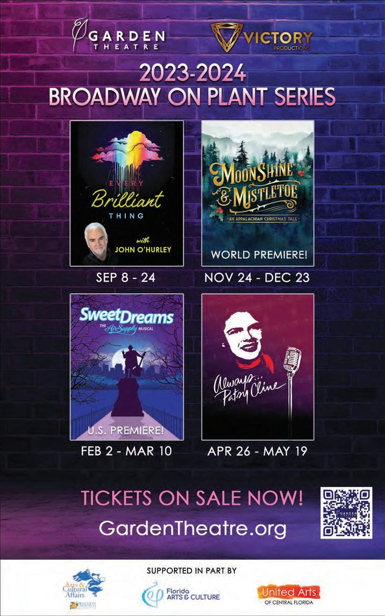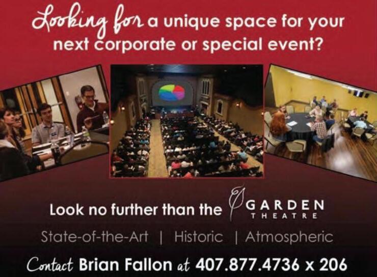Tickets are available online at gardentheatre.org or by calling 407-877-GRDN (4736). Discounts available for parties of 10 or more. For more information call 407-877-4736 ext. 208 or jean@gardentheatre.org.
