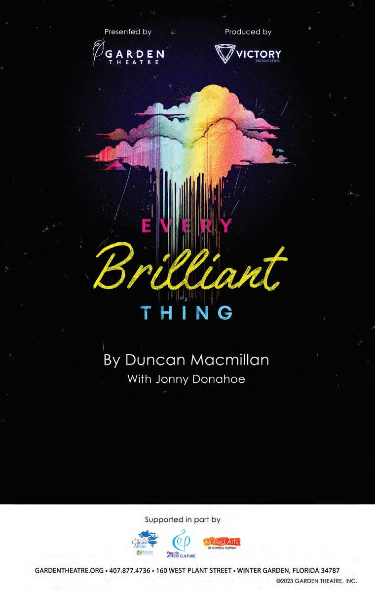 EVERY BRILLIANT THING is presented by special arrangement with Broadway Licensing, LLC, servicing the Dramatists Play Service collection. (www.dramatists.com)